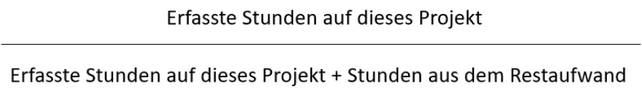 Diese Metrik liefert Ihnen in Prozent, wie weit das Projekt fortgeschritten ist. Der Ist-Aufwand in Stunden kommend aus der Zeiterfassung wird hierfür dem Gesamt-Aufwand gegenübergestellt. Der Gesamt-Aufwand besteht aus dem Ist-Aufwand plus dem Restaufwand aller offenen Aufgaben in Stunden.