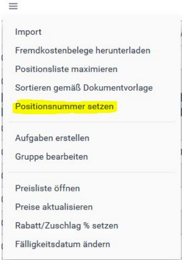 In Ihrem Dokument können Sie in der Positionsliste ein oder mehrere Datensätze markieren und im Funktionsmenü die Funktion "Positionsnummer setzen" auswählen.