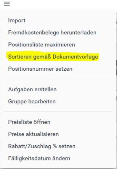 Dokumentpositionen - Positionsnummer setzen und sortieren gemäß Dokumentvorlage