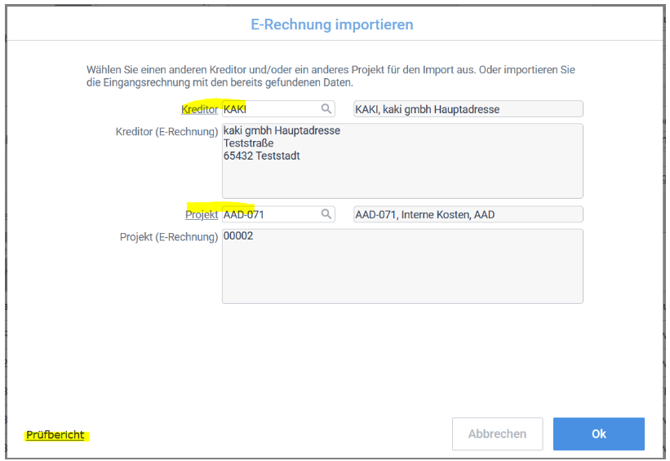 Wird der Lieferant erkannt, wird er als Kreditor automatisch vorausgefüllt. Sollte er nicht automatisch zugeordnet werden, gibt es zwei Möglichkeiten: