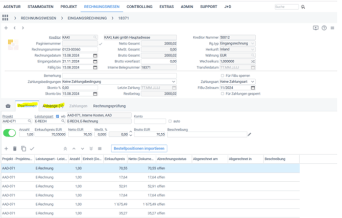 Um beide Anforderungen zu erfüllen, wurden in PROAD Erweiterungen sowohl für den Bereich der Eingangs- als auch der Ausgangsrechnung implementiert.