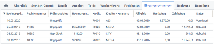 - Benutzerrecht: Projekt > Projekt > Eingangsrechnungen > Sichtbar