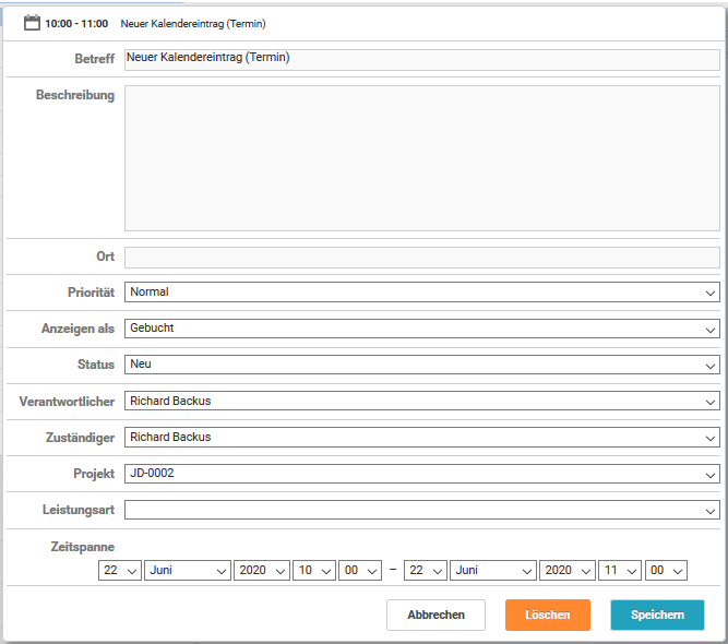 Wenn Sie einen Termin doppelklicken, wird die Bearbeitungsmaske geöffnet.