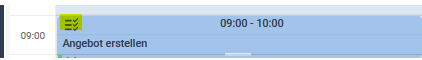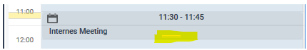 Mit dem kleinen Bedienelement (waagerechter Doppelstrich, gelb markiert) am unteren Rand eines Termins haben Sie die Möglichkeit den Termin nach „unten“ zu ziehen. Sie verlängern damit die Dauer des Termins.