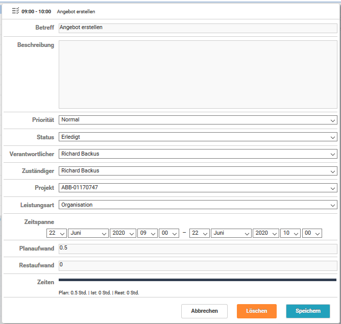 Hier können Sie, wie bei den Terminen auch, alle Änderungen vornehmen und speichern oder die Aufgabe löschen.