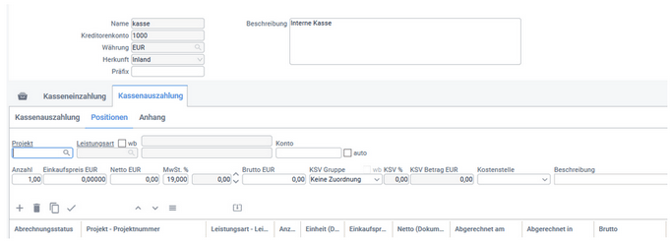 Folgende Eingaben müssen Sie vornehmen, um eine Kassenauszahlung zu erfassen.
