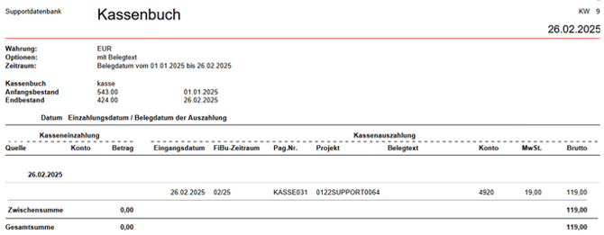 Die Kasseneinzahlungen und Kassenauszahlungen sowie die Bestandsermittlung (Endbestand), erfolgen getrennt pro Kassenbuch.