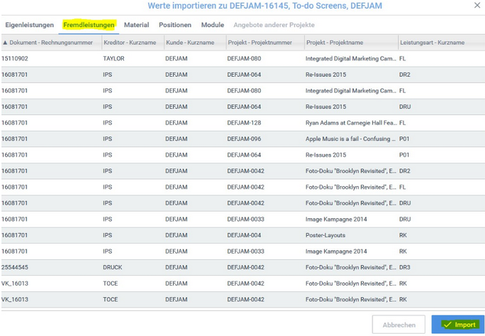 - Fremdkostenbelege in Projekten abrufen
