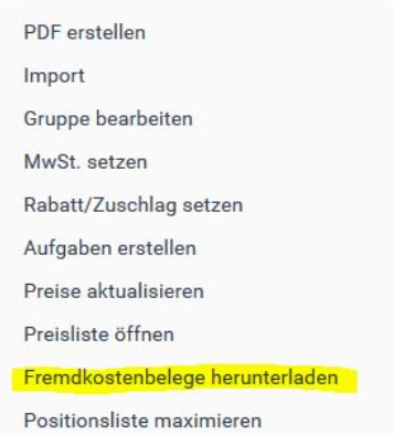 - Wählen Sie im Funktionsmenü den Eintrag "Fremdkostenbelege herunterladen" aus
