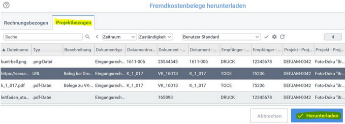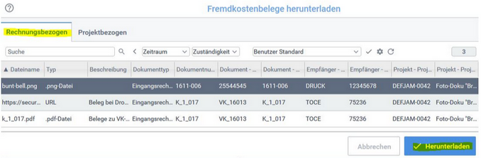 - Mehrere Belege in der Projektabrechnung herunterladen