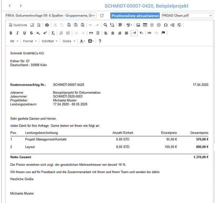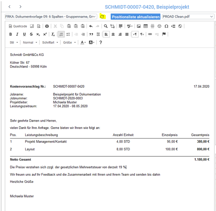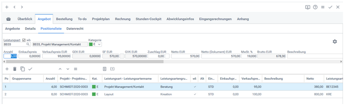 Um nachträgliche Änderungen in Positionslisten für Angebote oder Rechnungen vorzunehmen, gehen Sie bitte folgendermaßen vor: