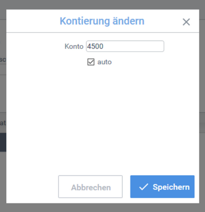 Die bisherigen Werte der Position werden nun angezeigt und können geändert werden. Sie können für jeweils eine Position das Konto und das Automatik Kennzeichen ändern.