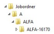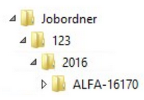 Optionen „Register“, „Kurzname“ und Projektnummer wurden gewählt. Der Kurzname des Kunden lautet „ALFA“, die Projektnummer „ALFA-16170“, so wird folgende Verzeichnisstruktur aufgebaut:
