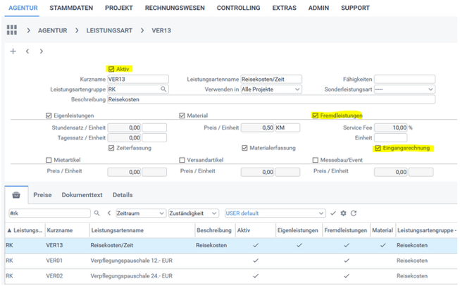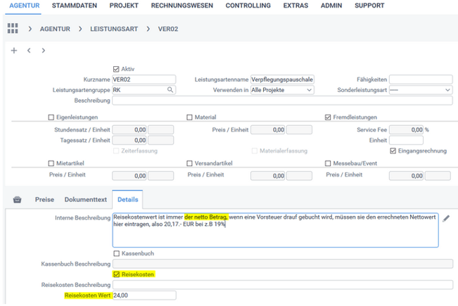Dies erfolgt im Menü Agentur > Leistungsart im Tab „Details“.