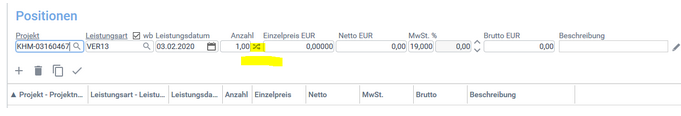 Der Nettobetrag berechnet sich aus dem Feld "Anzahl" mal "Einzelpreis".