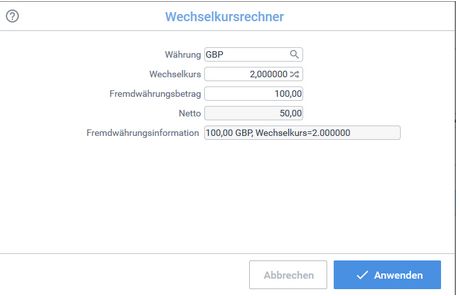 3. Nun öffnet sich der Dialog "Wechselkursrechner".
