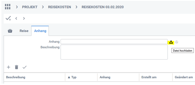 In dem Tab „Anhang“ können die zugehörigen eingescannten Belege gespeichert werden.