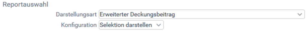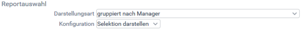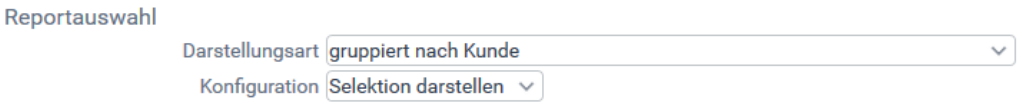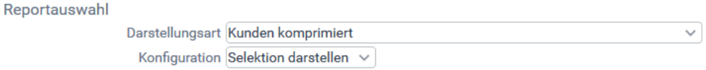 Im Bereich der Reportauswahl können Sie spezielle Einstellung zu der Darstellung Ihrer selektierten Daten auswählen. Die Darstellungsart bestimmt hierbei bereits die Ausgabe der selektierten Daten. Im Fall dieses Reports stehen Ihnen die folgenden vier zur Verfügung.