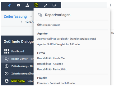 - Benutzerrecht: Rechteliste > Extras > Report Center > Zeiterfassungskontrolle > Sichtbar