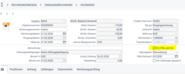 4) Die Checkbox „für Fibu sperren“ darf nicht markiert sein