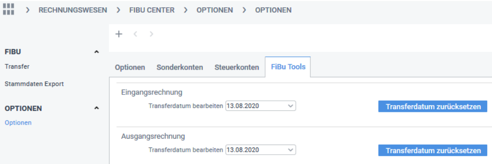 Um einen kompletten Lauf zurückzusetzten öffnen Sie den Dialog Rechnungswesen > Fibucenter > Fibu Option > Tab FiBu-Tools.