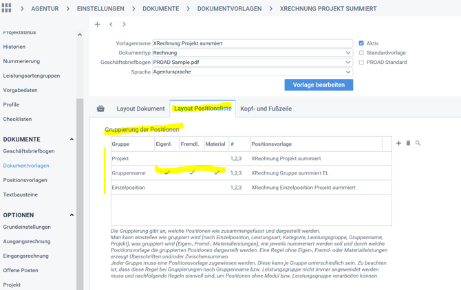 Schon vor dem Einsatz der XRechnung konnten PROAD-Nutzer auf unterschiedlichste Weise Gruppierungen in Dokumentvorlagen vornehmen. Diese Gruppierungen werden nun in die relevante XML-Datei der XRechnung eingebunden.