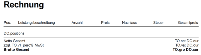 So sollte auch die genutzte Dokumentvorlage im Positionsbereich aufgebaut sein. Ein Beispiel hierfür stellen wir Ihnen am Ende dieser Dokumentation zum Herunterladen zur Verfügung.